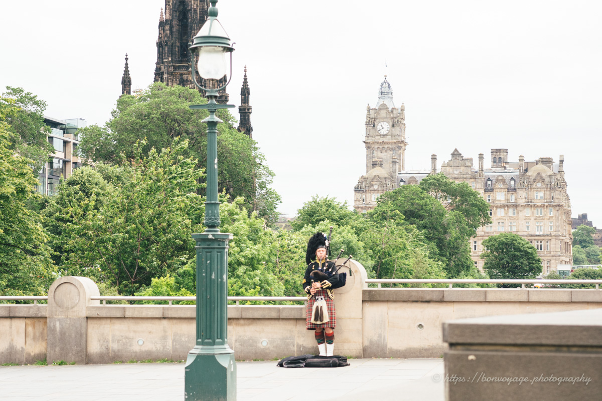 中心地へ到着するやいなや、スコットランドのイメージそのもの、といった光景が次々と目の前に現れる。民族衣装をまといバグパイプを演奏する人が街角のあちこちにいるのを目にすると、スコットランドに来たんだなぁと実感する。